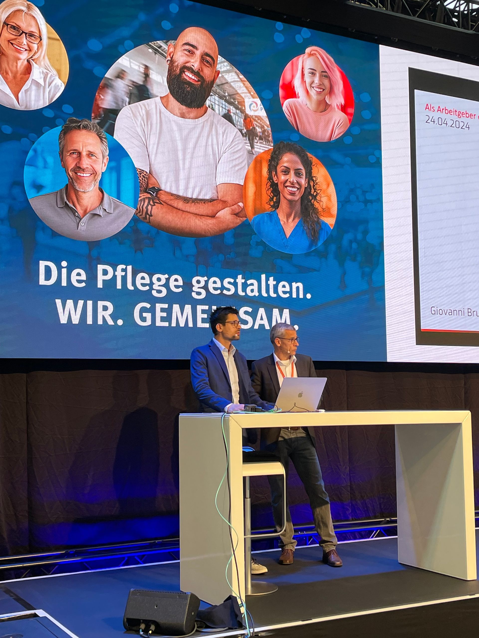 Giovanni Bruno (fokus>digital) und Dr. Thomas Hilse (HILSE:KONZEPT) on stage auf dem Altenpflege Messekongress in Nürnberg